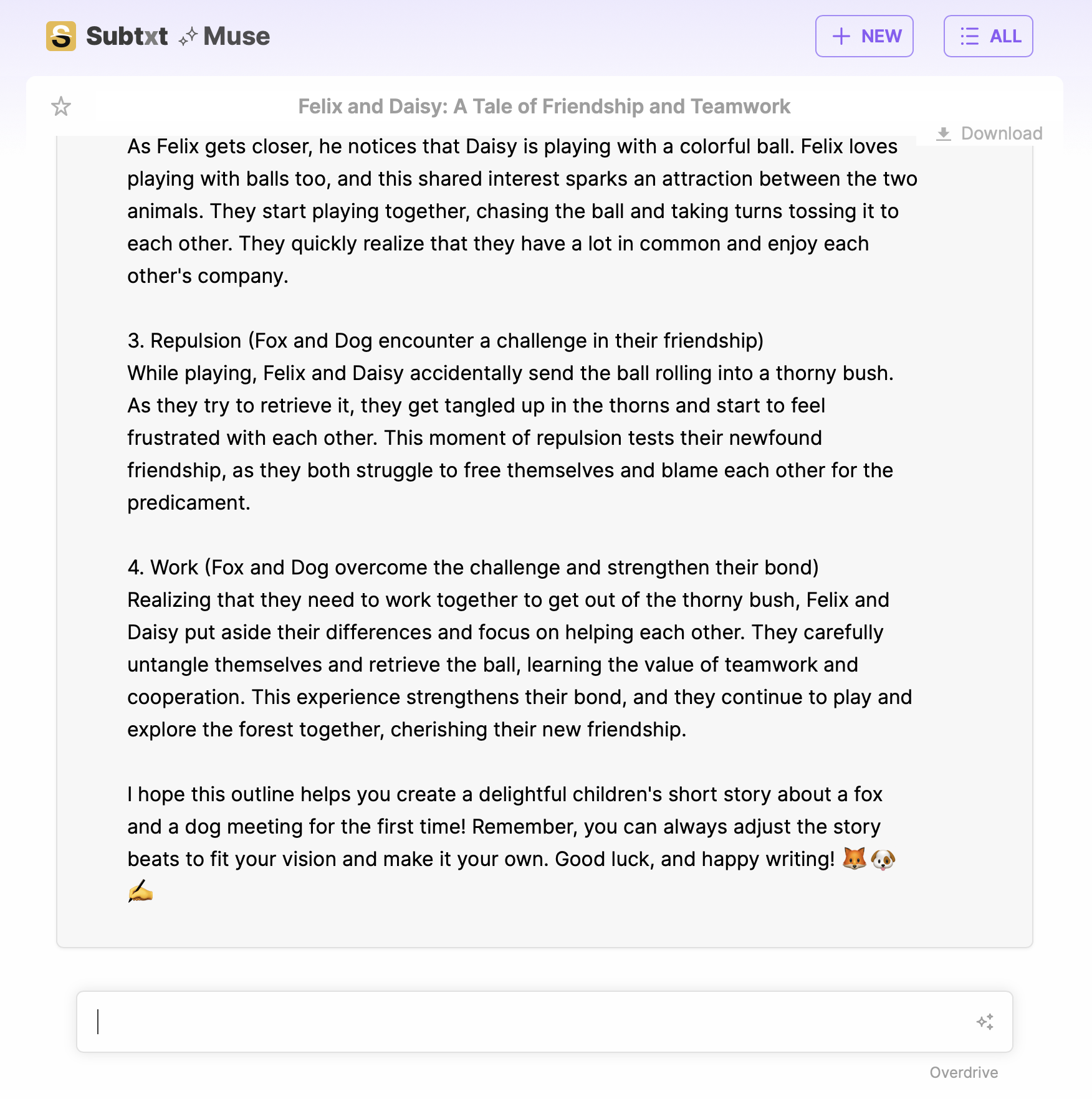 All that’s left are a simple tweaks and adjustments here and there for spelling and storytelling (you can do it right there in the Writing section), and then download the final product to take into your favorite writing app.